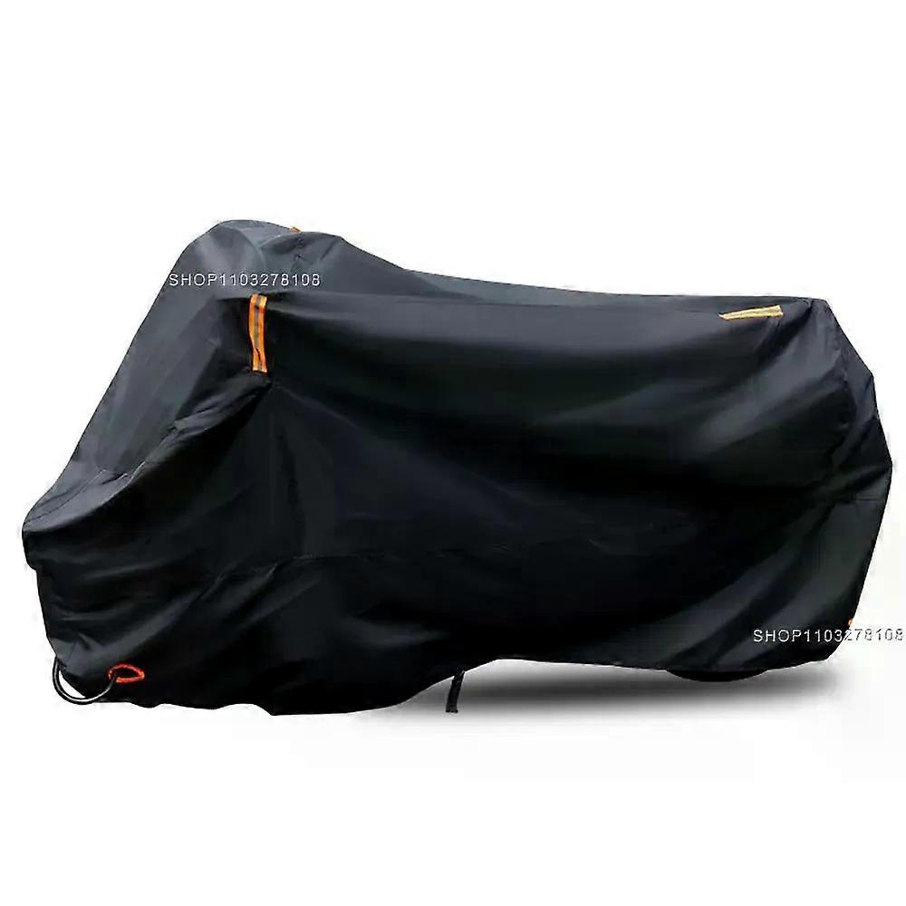 Specifications Origin:Mainland China Material:Oxford cloth Feature Fit for all ModelsOur motorcycle cover is suitable for various motorcycles Please measure your motorcycle before ordering.)The seams are double-stitched with waterproof tape inside, effectively solving the problem of water leakage. 4 reflective stripsThere are 4 reflective strips with the scooter cover, two on the front and two on the side.It is easier to find your motorbike in the dark. Reflective at night, greatly improving safety and preventing accidents. High Quality Material:The outdoor waterproof motorcycle cover is made of oxford cloth material and a PU and UV lining for protection. It is universal throughout the year and is waterproof, snowproof, windproof, dustproof, sun protection, lightweight, and ultra soft. Locking Holes & Windproof BuckleThe motorcycle cover has two webbing lock holes, which are less prone to damage and rust than metal locking holes.It is more effective against theft. The front and rear elastic straps and windshields are designed to fit your motorcycle better and protect it from strong winds Easy to storeThe package includes a storage bag that allows you to easily store your scooter cover when not in use. The cycle cover will not take up much space and will remain clean and ready for use. Specifications Condition: 100% Brand New Material:Oxford cloth Color: Black Size: S-4XL Origin: Mainland China Package List: 1x Motorcycle Cover 1x Carry Bag Warm tips: Please measure the dimensions of your motorcycle before purchasing. If you have any questions, please feel free to contant