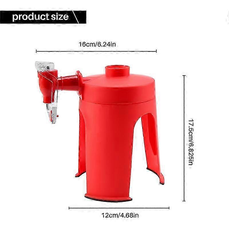 Durable plastic construction Washable and reusable. Easy for operating Offer you much convenience. will last until the bottle is empty Drink Dispenser 2-liter soda dispenser. Designed to keep soda and other carbonated beverages from going flat. Compact design, you can put it into your fridge Pour soda right from your fridge. Great for use , office, camping, entertaining and more. Color: Red Material: ABS environmental protection plastic Size(.): 16x12x17.5cm Drink Dispenser dispenser keeps drinks carbonated and dispenses right from your fridge. Simply twist dispenser onto the top of a plastic 2-liter bottle,then flip the bottle upside down to dispense drinks,the sode will stay carbonated and you can pour it right from your fridge. Package Contents: 1 x Drink Dispenser Only the above package content, other products are not included. Note: Light and different displays may cause the color of the item in the picture a little different from the real thing. The measurement allowed error is 1-3cm.