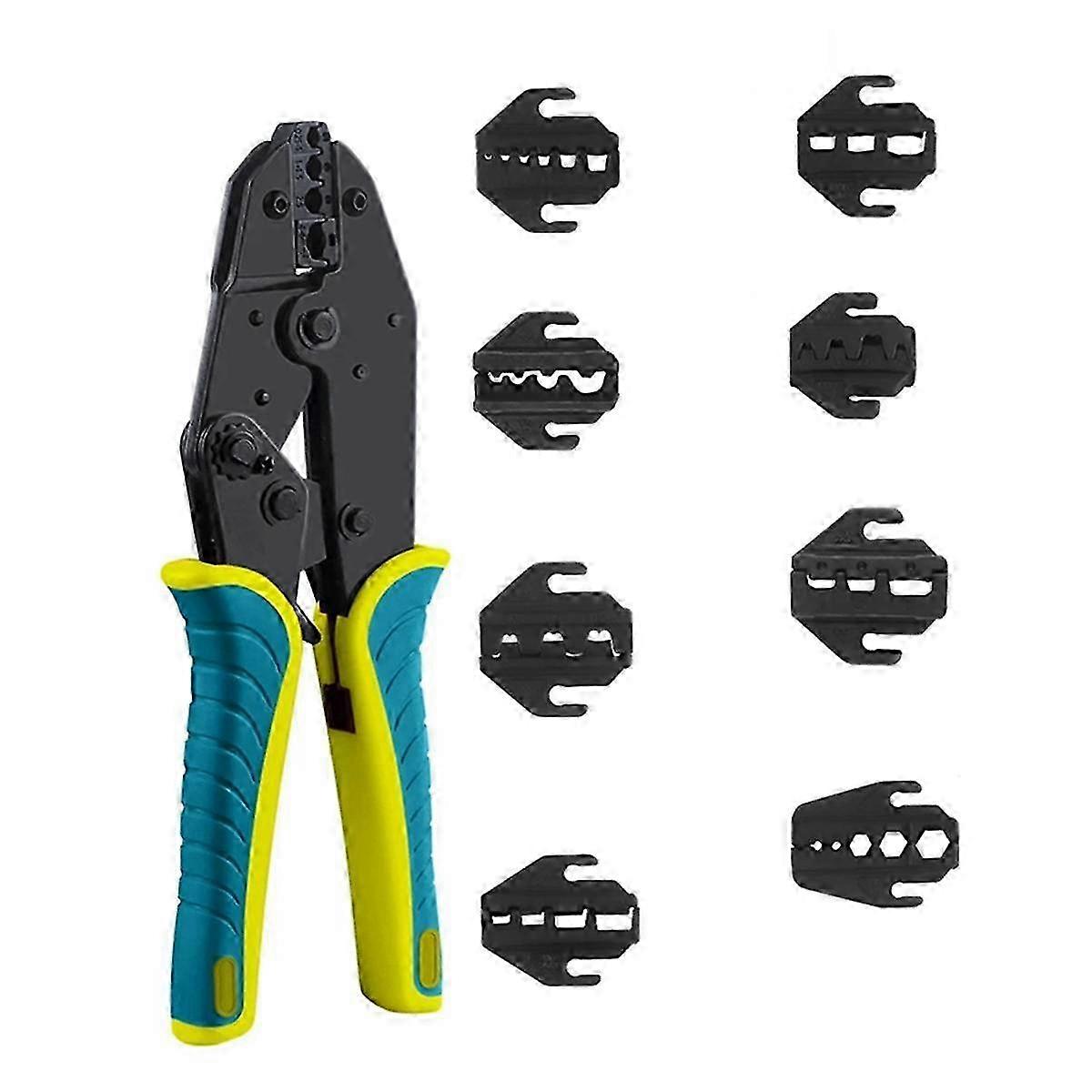 Description: VERSATILITY: quick-changing dies(modularity), crimping range: 20-2AWG(0.5-35mm2). Works with insulated terminals,open barrel,non-insulated UTandOT terminals,insulated and non-insulated ferrules,heat shrink connectors,Solar connector. EASE OF USE: The adjustable ratchet enables the crimping tool to apply precise pressure to terminals and connectors. The quick-release design of the product makes it only takes a moment to replace the dies. SAFETY: Terminals and connectors are crimped by squeezing the handle through a complete ratcheting cycle until the handle releases automatically. This process can improve the safety of the tool. CONVENIENCE: Made for an easy install. Ergonomic handle design allows you to save energy, which makes your operation easier and faster, a great time and labor saver. Due to different production batches, the label words on the product are random. The actual product may have slight differences or color differences. This does not affect the applicability. Material: steel colour: Yellow-green Package Contents: 1 x Crimping Pliers 8 pairs of jaws Only the above package content, other products are not included. Note: Light reflection and different displays may cause the color of the item in the picture a little different from the real thing. The measurement allowed error is 1-3cm.