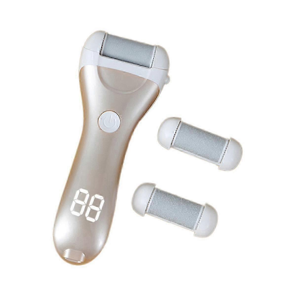 [High Speed Grinding and 2 Modes Adjustable]This feet remover can separate the easily with high speed rotate grinding roller. With 2 speeds adjustable design, the foot grinder callus remover help you removal fast or slow. [Make your feet restore the delicate and smooth skin]Offer you Professional Feet Care for Dead, Hard Cracked Dry Skin , you are free to wear any shoe you like to the party with confidence , Do fitness and Sports . [3 Different Grinding Heads]This foot file callus remover for feet has 3 different grinding heads. Fine grinding head suitable for daily foot care, Medium grinding head suitable for newly formed or calluses, Rough gringing head suitable for old hard thick and stubborn horny. You can choose suitable grinding head according to the skin to care. [ 1200mAh Large Capacity Lithium Battery ]The electric foot file with high quality 1200mAh large capacity lithium battery can work for about 180 Minutes. Only charge about 3 Hours. Through the indicator light , you can identify the remaining working hours percentage . No need to worry about sudden power off . Included USB charging cable, the remover for feet can easy charging with a laptop, power band, socket, and others. [ Much as IPX7 Whole Body Waterproof ]The dry skin feet remover with IPX7 waterproof design, can be rinsed under running water. This foot scrubber remover will provide perfect foot care for your feet when you get out of the shower. Please dry your feet before use for better results. (NOTE: Do not soak it in water for a long time.) Colour:Golden Material:ABS Package Contents: 1 x Electric Foot File Pedicure Tools Only the above package content, other products are not included. Note: Light reflection and different displays may cause the color of the item in the picture a little different from the real thing. The measurement allowed error is 1-3cm.