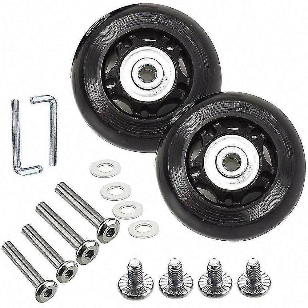 Luggage Suitcase Replacement Wheels.this set of luggage replacement wheels can meet your needs.Features:Wheel outer diameter: 75mm / 70mm / 80mmWheel width: 24mmBearing inner diameter: 6mmAxle: 36mm, 40mm (not including the head.)Material: rubbercolour: blackPackage Contents:2 x wheels2 x 36mm axles2 x 40mm axles4 x axle screws4 x washers2 x wrenchesOnly the above package content, other products are not included.Note: Light reflection and different displays may cause the color of the item in the picture a little different from the real thing. The measurement allowed error is +/- 1-3cm.