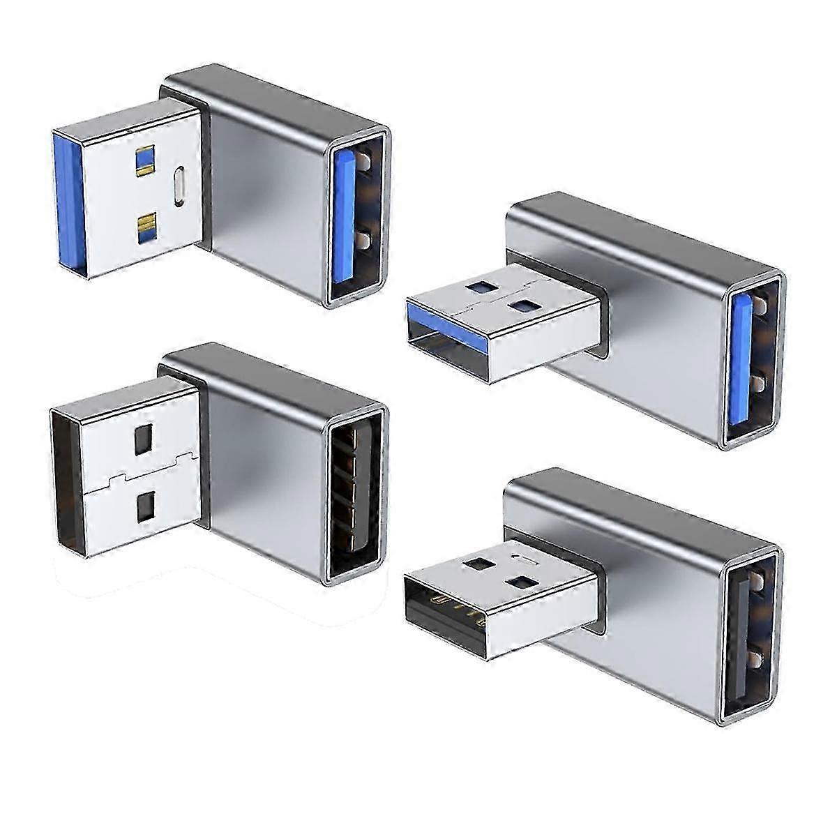 USB 3.0 Adapter Set: 4-Piece Angle Converter Exten with Up/Down & Left/Right Angles, Male to Female Compatibility