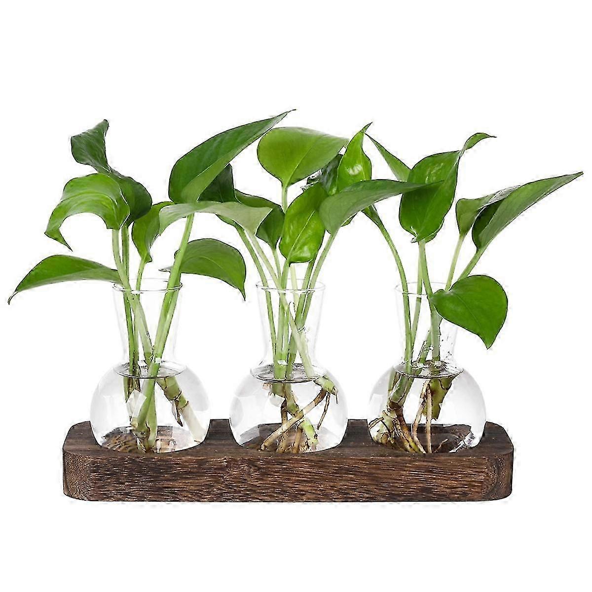 Propagation Stations for Plants: Glass Vase with Wooden Tray, Retro Style Terrarium for Bulb & Flower Lovers