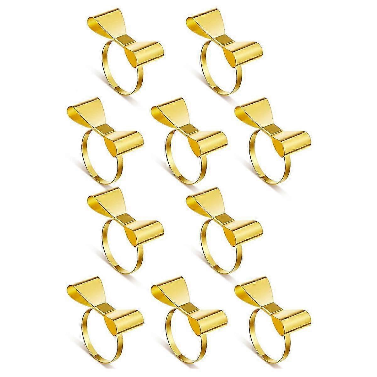 Golden 10-Piece Bow Napkin Ring Set - Metal Bow Napkin Holders for Serviettes - Chic Bowknot Design