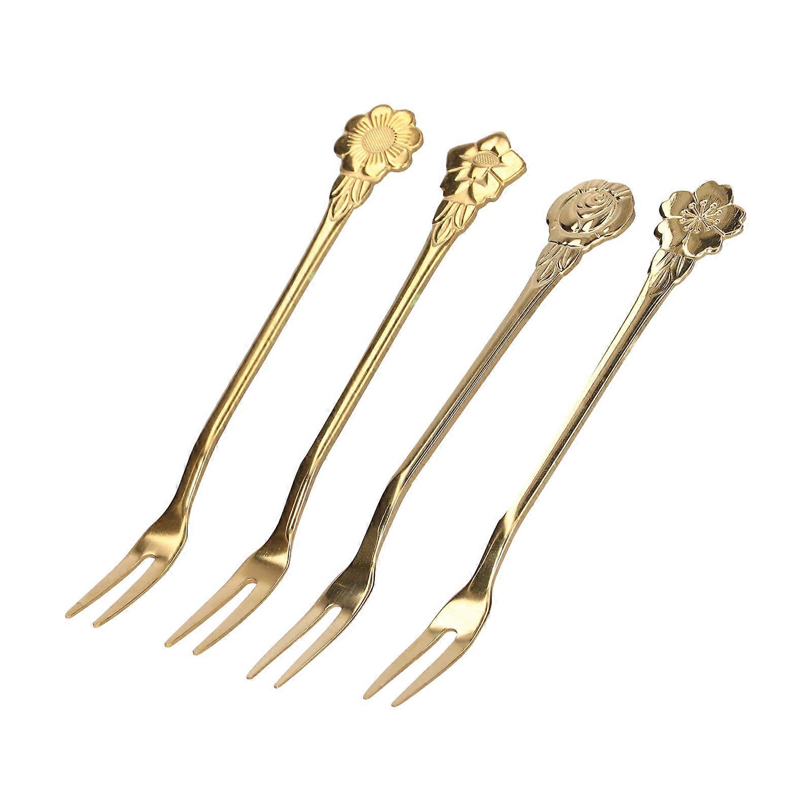4pcs 2 Prong Fruit Forks 13.4x1cm Stainless Steel Gold