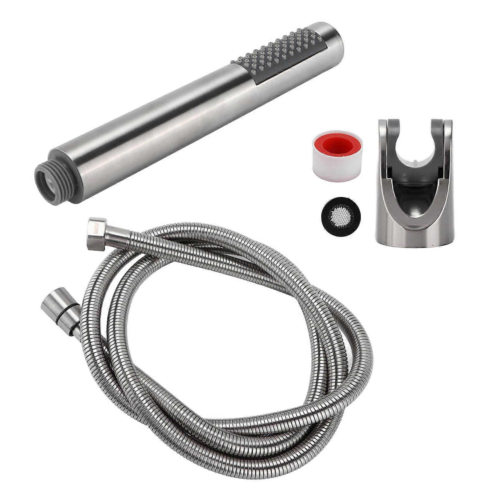 3Pcs/Set Stainless Steel Hand Shower Brushed Round Single Shower Head with Hose Fixed Holder Item Type: Shower Head Color: Brushed Material: Stainless Steel, ABS Weight: Approx. 591g / 20.8oz