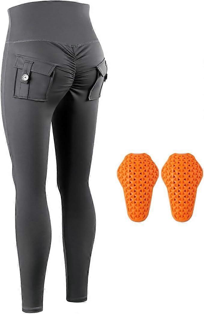 WOSAWE Women's Motorcycle Pants Stretchable Yoga Butt Lifting Leggings High Waist Protective Cargo Leggings