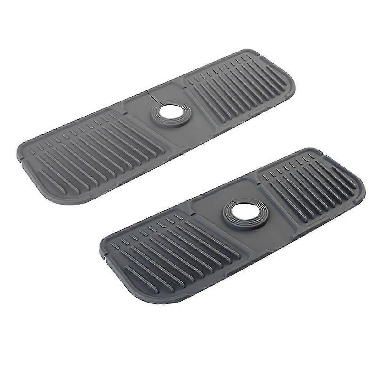 ADAPTABLE DESIGN - Our silicone water trap pads are made of food-grade silicone. opening design features a tightly wrapped faucet on each side, eliminating the need to cut the sink backsplash. Foldable design, no need to worry about the distance between wall and faucet. Great for kitchen and bathroom countertops. Upgraded self-draining water - The upgraded silicone faucet splash guard automatically drains the water in the faucet catcher pad into the sink, removing water stains without water accumulation and keeping it dry. No need to worry about sink splashbacks taking a lot of time to dry Keep your countertops dry - Kitchen faucet absorbent pads are 100percent silicone, soft and reliable, reusable and . other fabric types countertop drying pads on the market. Just rinse with water or throw in the dishwasher Easily installs at the base of your kitchen sink, bathroom, farmhouse, RV or restroom to keep it clean and dry. The perfect sink accessory. KITCHEN DECOR - These silicone faucet spouts come in stylish shades that blend seamlessly into your home, creating the perfect kitchen accessory to add of comfort to your kitchen and add chic and simplicity to your house. Colour:grey Material:Silica gel Package Contents: 2 x drain pad Only the above package content, other products are not included. Note: Light reflection and different displays may cause the color of the item in the picture a little different from the real thing. The measurement allowed error is 1-3cm.