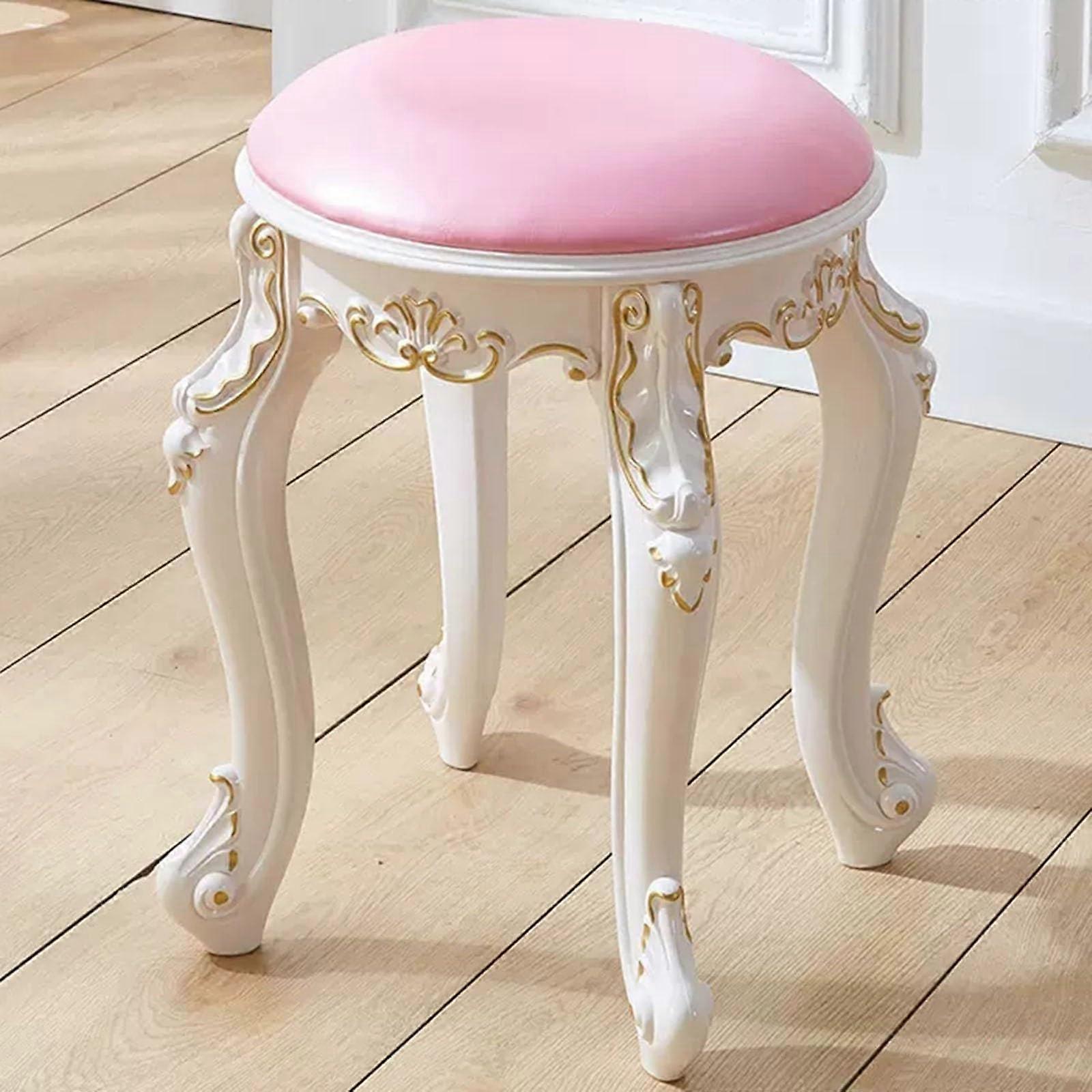 Elegant design with four delicate white lacquered legs and refined craftsmanship, enabling it to match a wide range of room styles. Sturdy construction: ABS plastic and steel legs with a padded seat; supports up to 240 lbs; rubber pads on the feet protect floors. Fine workmanship: PU upholstery with high-elasticity sponge for a comfortable, resilient seat; smooth surface gentle on skin and clothing; built for durable use. Easy to use: easy to assemble; clean with a damp cloth. Use scenarios: - Ideal as a vanity stool at a bedroom dressing table. - Suitable for makeup studios or beauty rooms. - Compact seating option in hotels or guest rooms, or as a lightweight seat for quick tasks.