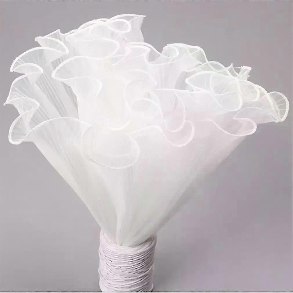 White Floral Packaging for Bouquets Including Decorative Mesh Wrapping Paper Pearl-Edged Wrapping Paper Wrinkled Wave Mesh
