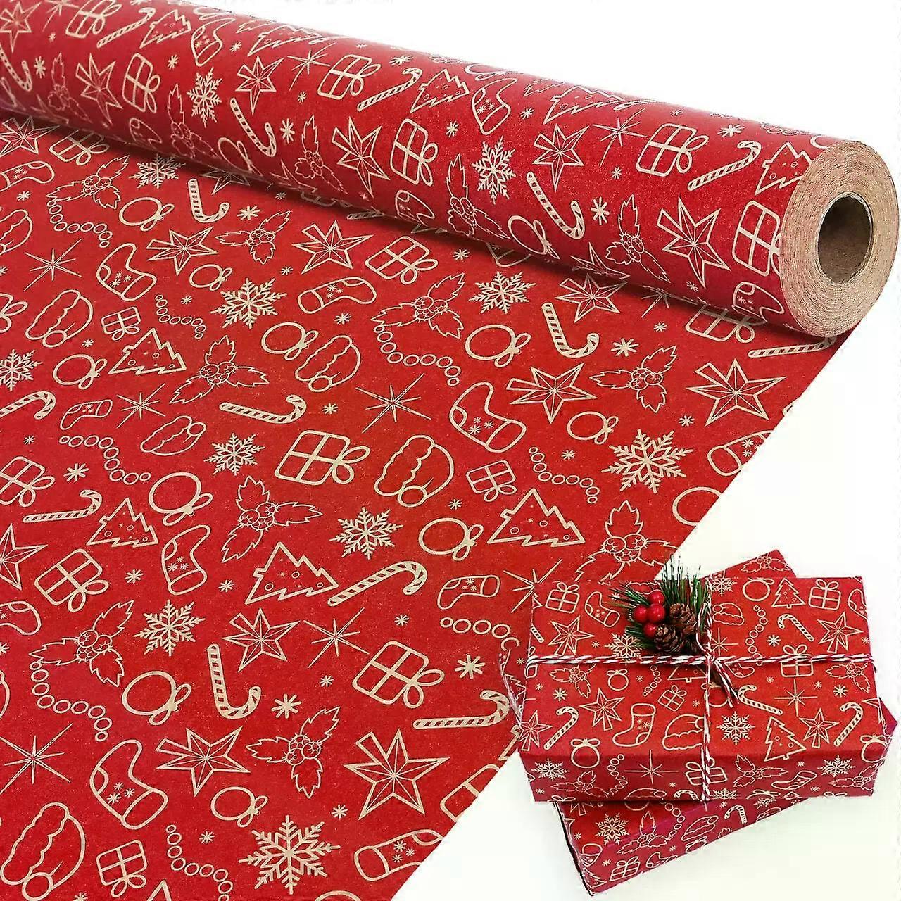 1 Roll 17x590 inch Christmas Kraft Paper Red Kraft Wrapping Paper for Holiday Xmas Gift Wrap with Snowflake Christmas Hats SIZE - this Christmas wrapping paper roll measures 17 inch wide by 590inchlong , around 520 g in weight. DESIGN - a variety of designs will add variety and versatility to your Holiday seasons, including Christmas stockings, gloves, holly, candy canes, red cars, gift boxes, candles, santa claus, reindeers, skating shoes, "Merry Christmas" letters and more in kraft paper. PREMIUM QUALITY - made by 80 GSM European kraft paper, proper thickness that it won't be easy to tear and rip but that it is not too thick yo hard to work with, recyclable and reusable, eco-friendly. MULTI-PURPOSE -chic brown kraft paper printed with designs, these wrapping paper not only can be used as holiday wrapping paper, also great for table coverings, table runner, craft projects and other inspirations. NO CREASE - wrapping paper comes in roll, compared with folded flat sheets, it is no wrinkles and no creases. _x000D_
