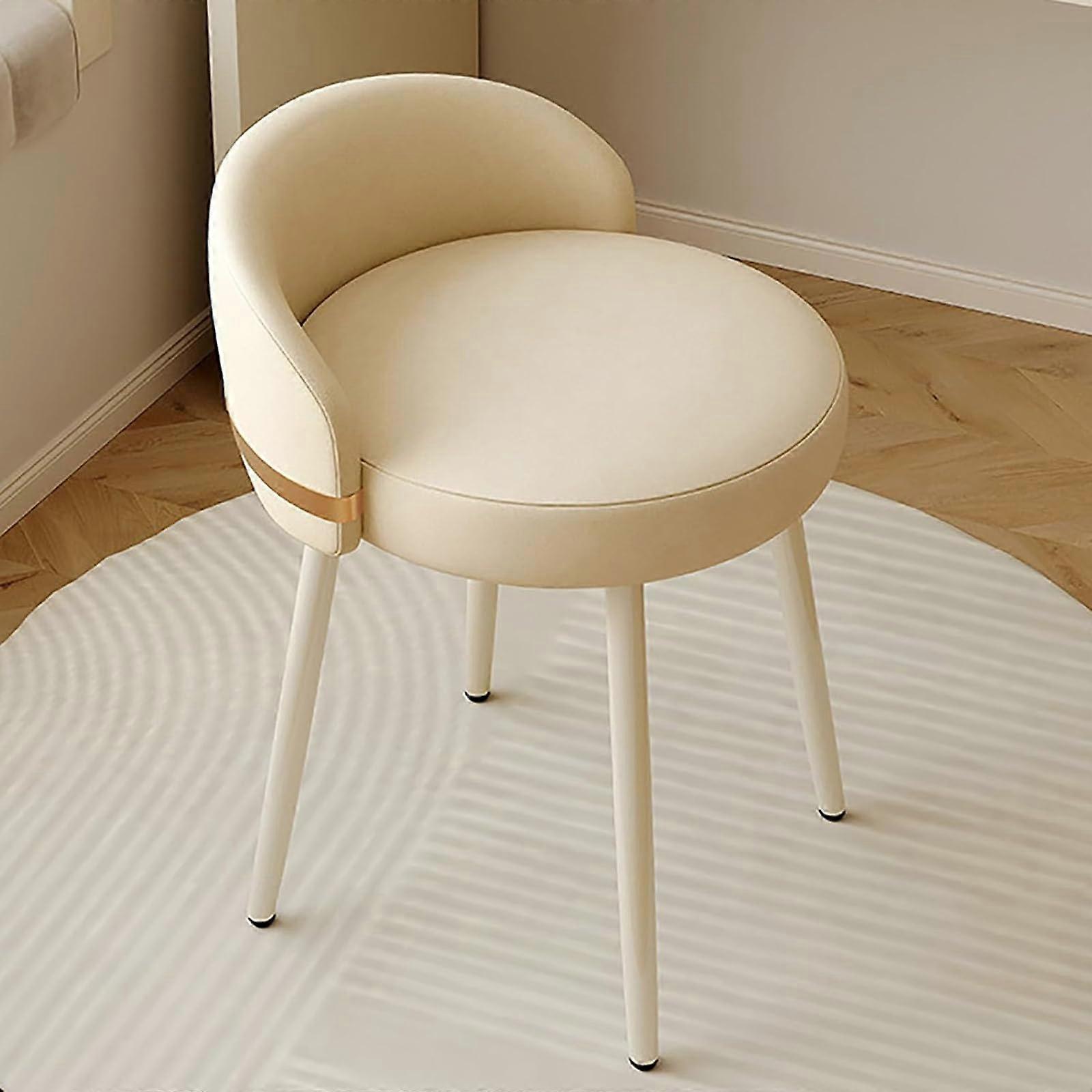 Vanity Chair For Women, Low-Back Swivel Makeup Stool, White PU Leather, Beige, Bedroom Cloakroom Living Room