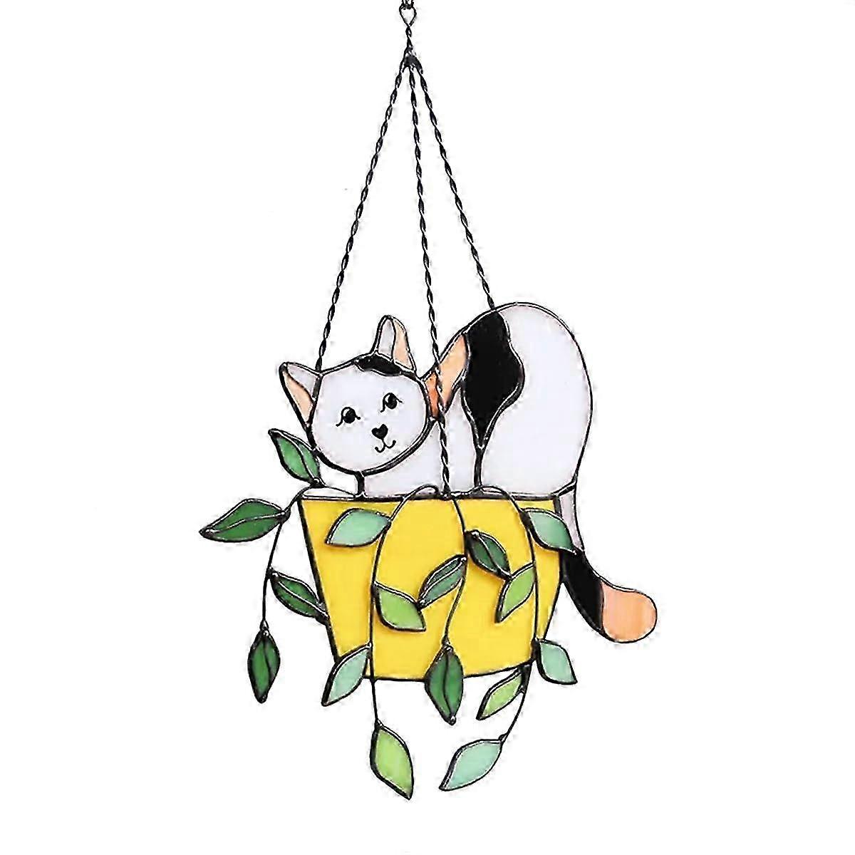 Cat in a Flowerpot Stained Glass Window Decor, Crystal & Acrylic Suncatchers