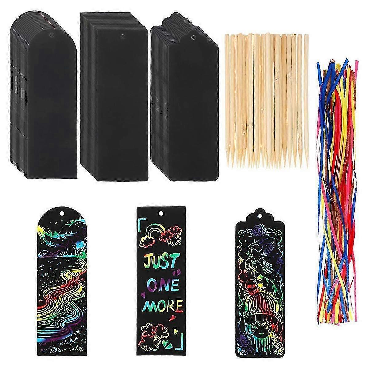 Student Party Favors: DIY Bookmark Hanging Gift Tags with Scratch Tool Ribbon for Classroom - Colorful and Fun