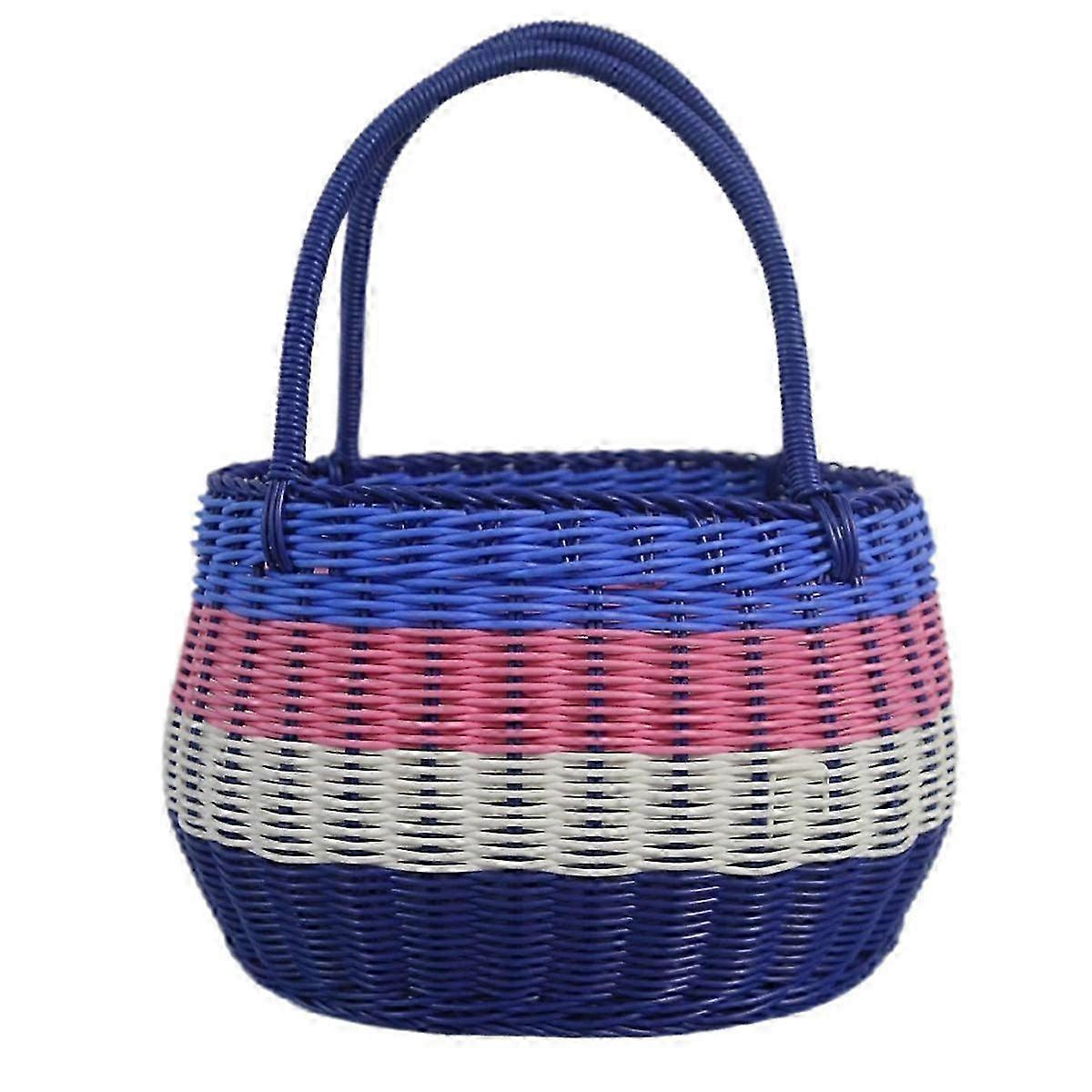 Outdoor Large Four-Color Picnic Basket with Imitation Rattan Woven Design - Perfect for Shopping, Fruits & Gifts