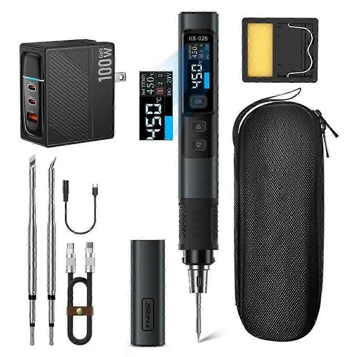 High Performance: Equipped with a powerful 100W output, the Portable Soldering Iron heats quickly to your desired temperature, ensuring efficient soldering on a of projects. Adjustable Temperature Control: Easily adjust the temperature with precision, catering to different types of soldering needs, from electronics repair to DIY projects. Versatile Use: Comes with high-quality tips that are perfect for intricate soldering work in electronics, providing precise and reliable joints. Portable Design: Compact and , this soldering iron is ideal for on-the-go repairs. Its USB-PD compatibility means it can be powered through a standard USB port, making it extremely convenient for fieldwork. Specifications:-02B intelligent soldering iron Working voltage: DC9-24V Temperature: 100-450C (180-842F) Screen: 0.96IPS high-definition color screen Power supply: Type-c Supports fast charging protocol: PD/QC Power: 100W (maximum) Soldering iron Tip:HS02A- HS02B- Due to different batches, there may be differences in product appearance and printed text, which will not affect use Plug Type: US Plug, it applies to Canada, India, Mexico, Thailand, Taiwan, the , the Philippines and so on. Voltage: AC110V Colour:As Shown Material:ABS Package Contents: 1x Soldering Iron kit Only the above package content, other products are not included. Note: Light reflection and different displays may cause the color of the item in the picture a little different from the real thing. The measurement allowed error is +/- 1-3cm.