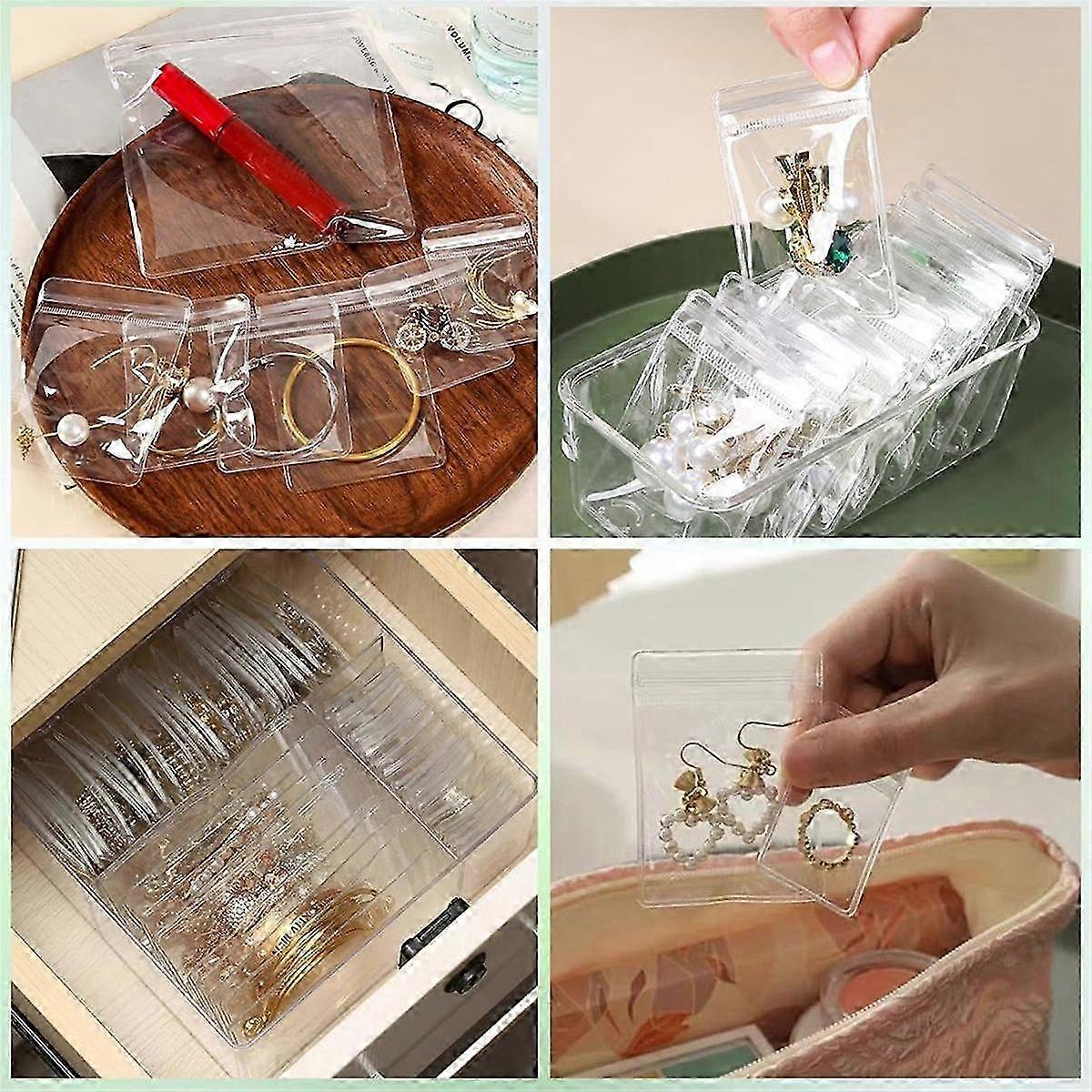 YOU WILL GET - the package includes 160 pieces plastic zipper bags in 5 different sizes, including 50 pieces of 5 x 7 cm/1.96 x 2.75 inches, 50 pieces of 6 x 8 cm/2.36 x 3.14 inches, 20 pieces of 7 x 10 cm/2.75 x 3.94 inches, 20 pieces of 8 x 12 cm/3.14 x 4.72 inches, and 20 pieces of 9 x 13 cm/3.54 x 5.11 inches, enough quantity and sizes to meet your demands. AIRTIGHT - These anti tarnish jewelry pouchs will keep your items dry, neat, organized, and away from moisture, heat , dust and protects the items from oxygen and bacterium, long-term preservation for your product. PREMIUM QUALITY - Made of high quality PVC material, they are sturdy and , prevent oxidation; Reclosable, the zipper lock bag is easy to open and close but will remain well sealed. High transparent design makes contents inside visible and quickly find what you need. EASY TO CARRY - PVC jewelry bags keep your jewelry neat and organized, easy to find. And the PVC bags are , easy to carry with you when you traveling, and 't take up too much space. WIDE USE - The clear Jewelry storage bags are suitable for storage jewelry, jade, gemstones, earrings,necklaces, rings, coins, small silver, , crafts and other small items, etc Colour:Transparent Material:PVC Package Contents: 160 * Jewelry bag Only the above package content, other products are not included. Note: Light reflection and different displays may cause the color of the item in the picture a little different from the real thing. The measurement allowed error is +/- 1-3cm.