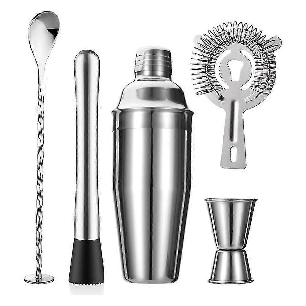 5-Piece Stainless Steel Bartender Kit with Shaker, Strainer, Jigger, T-Mixing Spoon & Muddler for Cocktail Making