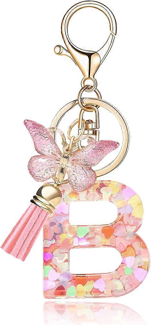 Fashion Initial Letter Keychain Tassel Butterfly Pendant for Wallet Handbag Women Girls