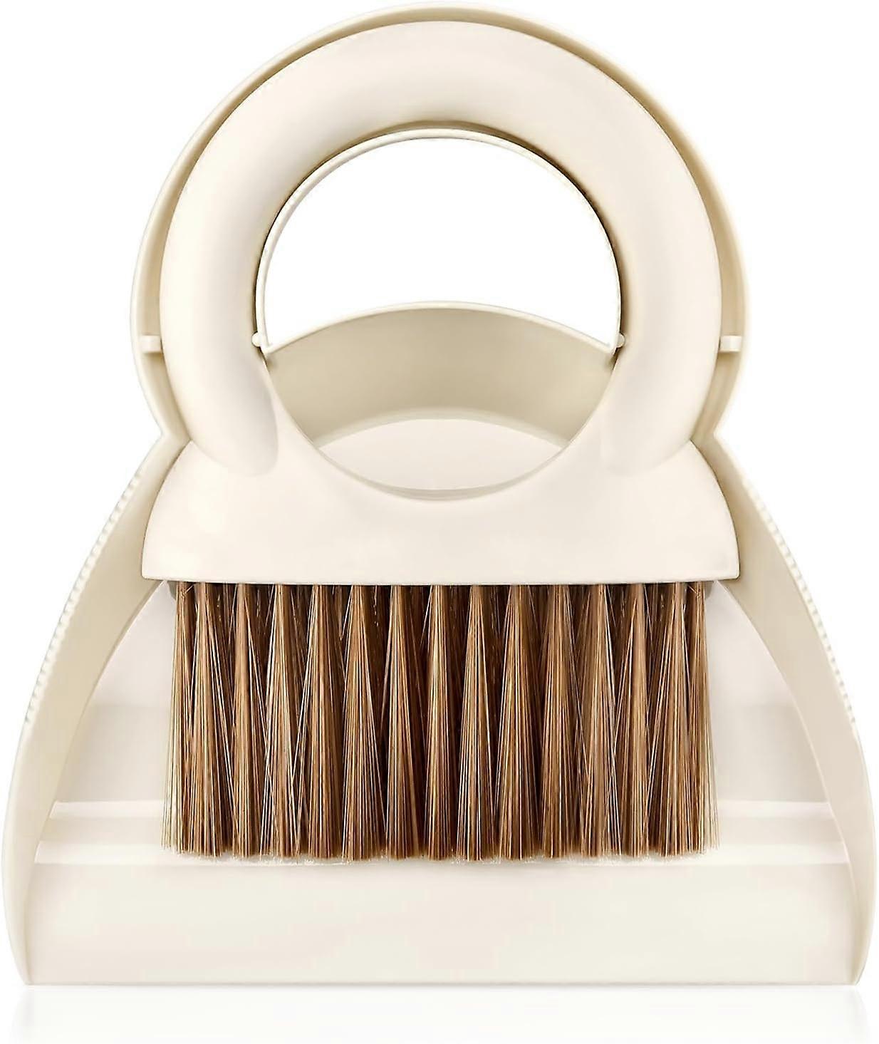 Camping Mini Hand Broom and Dustpan Set: Small Brush and Dustpan for Cleaning Home Pets - White