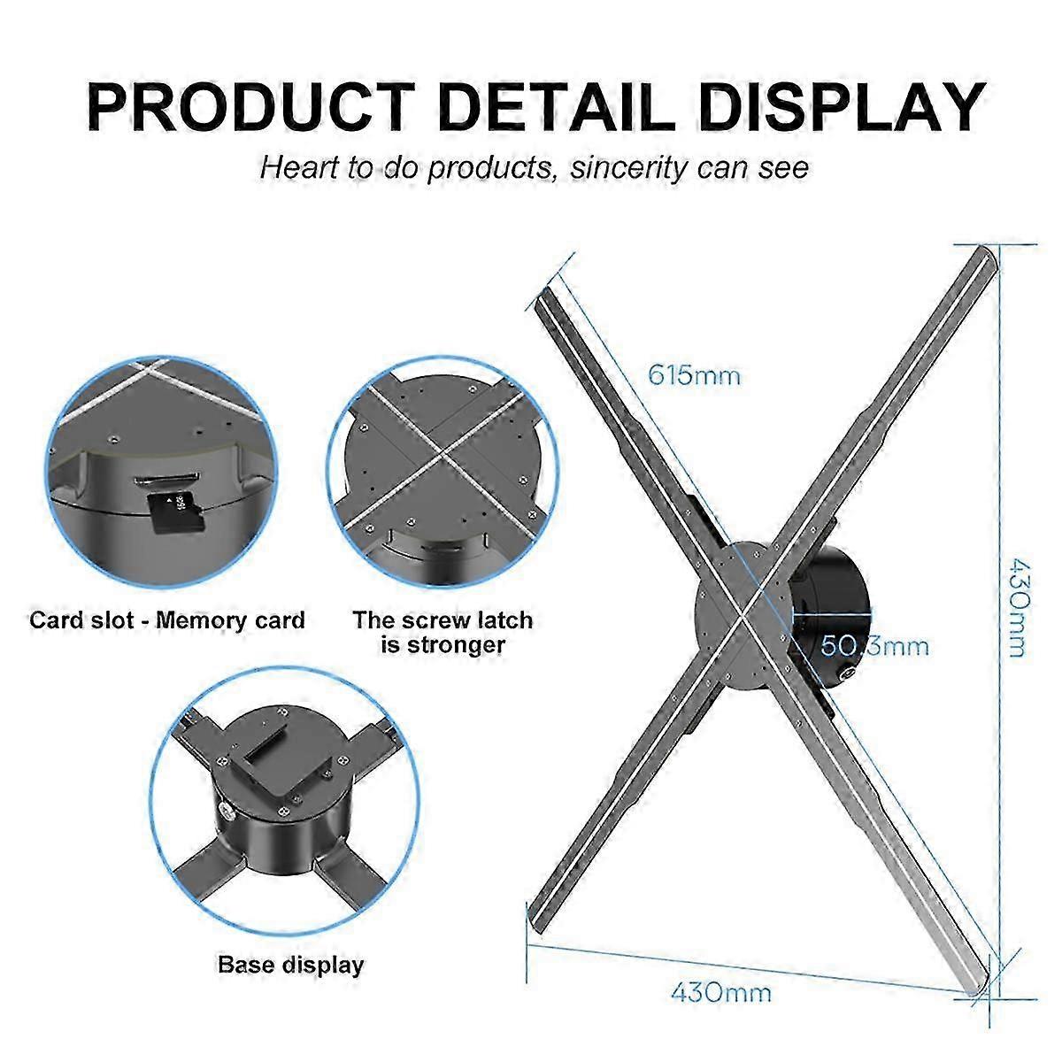WiFi Holographic Projector 3D Display with 615mm Lens & 722 LED for Image Video Advertising in Stores