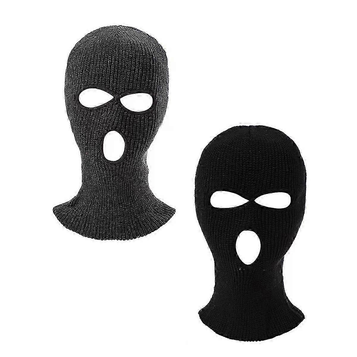 Outdoor Knitted Hat with Solid Color and Warm Three-Hole Mask for Cycling and Hood Protection