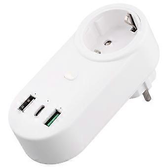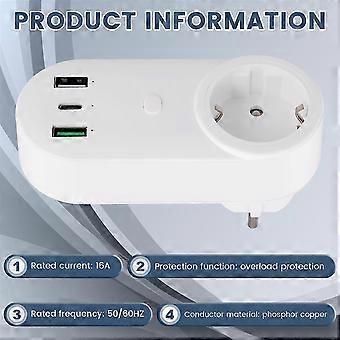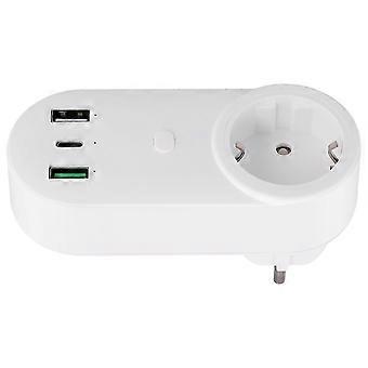 Smart Socket WiFi Plug with 16A 2-Hole USB & Type-C Outlets - 65W Remote Control, Compatible with Alexa & EU Plug