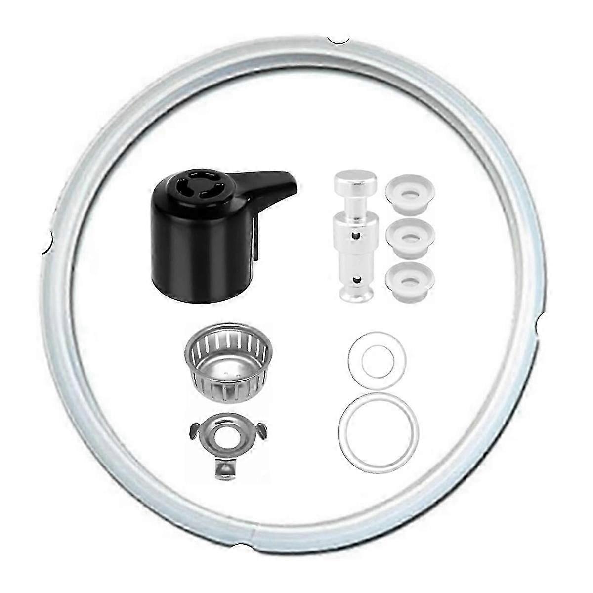 HIGH-QUALITY MATERIALS: These replacement parts are made of , flexible silicone that is reusable and cleanable. They resist deformation even with regular use, maintaining the integrity of the pressure cooker seal. FUNCTIONAL ESSENTIALS: The float and sealer are essential for the proper functioning of your pressure cooker. They help maintain the necessary pressure by ensuring a tight seal, preventing steam from escaping during cooking. REGULAR REPLACEMENT RECOMMENDED: To optimal performance and safety, replace the seal every 18-24 months, or sooner if any deformation is noted. Keep your pressure cooker in like-new condition with these must-have replacements. Colour: Material:Silicone and Aluminum Alloy Package Contents: 1 x seal 1 x exhaust valve 1 x float valve 3 x float valve washers 1 x anti-clogging guard 1 x anti-clogging guard bracket 2 x valve seals Only the above package content, other products are not included. Note: Light reflection and different displays may cause the color of the item in the picture a little different from the real thing. The measurement allowed error is 1-3cm.