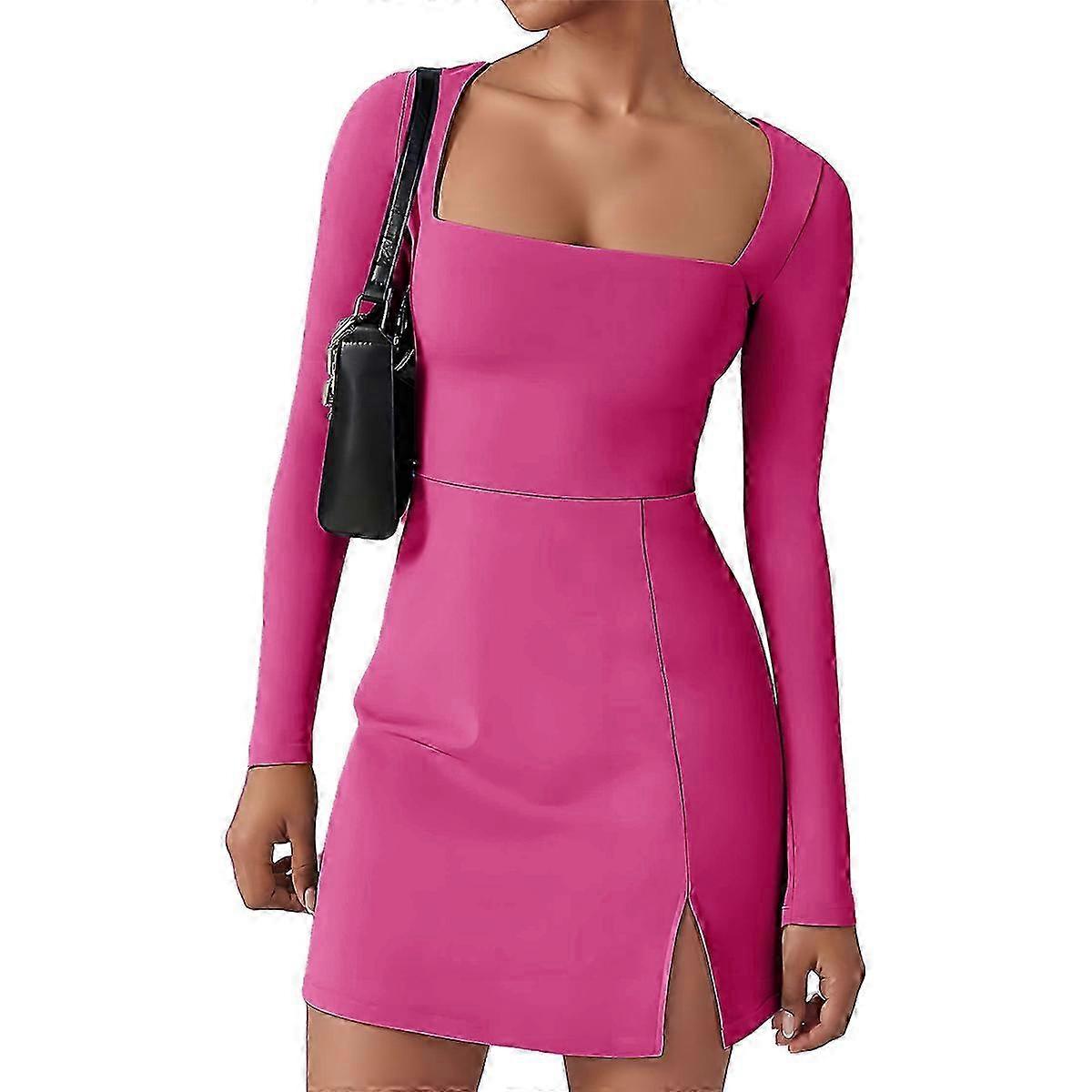 New Square Neckline Bodice Dress in Rose Red Color