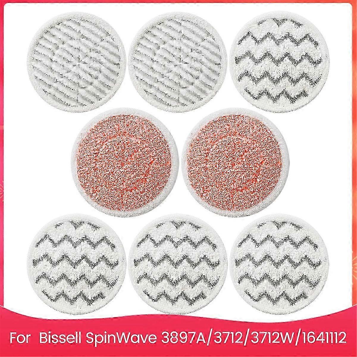 Compatible Models: Fit for for SmartSteam Scrubbing Steam Mop 3897A,3712,3712W Steam Rotating Mop Pads, Part No 1641112, Designed to use on all sealed hard floors, like wooden floors, ceramic tile, laminate floors, marble floors 8 Pack Design: You get 8 packs of for 3897A Steam Rotating Mop Pads, Separately,they are Powerful scrubby pads x 2, pads x 4, Heavy scrubby pads x 2 Mopping Pads Upgrade: Powerful Scrub Pads the pad is same size with the regular scrubby pads, be made of velvet and bristle brushes, super friction can break up the stubborn sticky stains easily in kitchen, balcony or entryway Microfiber Material: Effective cleaning, strong water absorption, dry fast, without fading in high temperatures. Vacuum Part Type:Mop Pads Colour:As Shown Material:microfiber Package Contents: 2 x Mop Cloth() 4 x Mop Cloth(Waves) 2 x Mop Cloth(Orange) Only the above package content, other products are not included. Note: Light reflection and different displays may cause the color of the item in the picture a little different from the real thing. The measurement allowed error is 1-3cm.