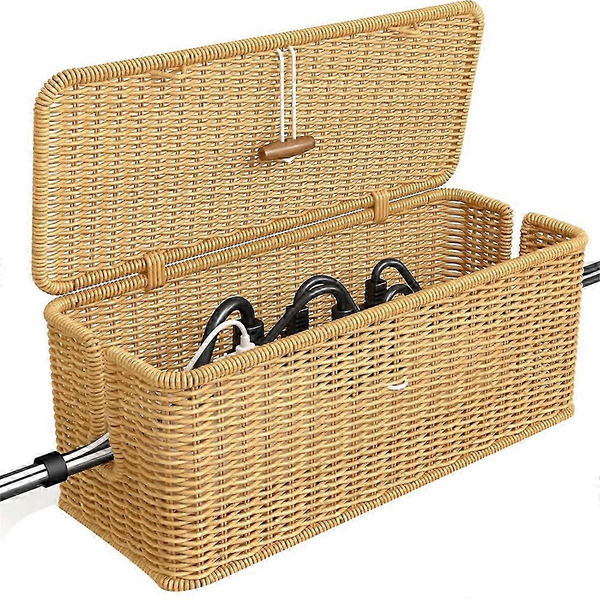Cable Management Box with Locked Cover & Power Strip Organizer - Handmade Rattan Cable Organizer for Cords