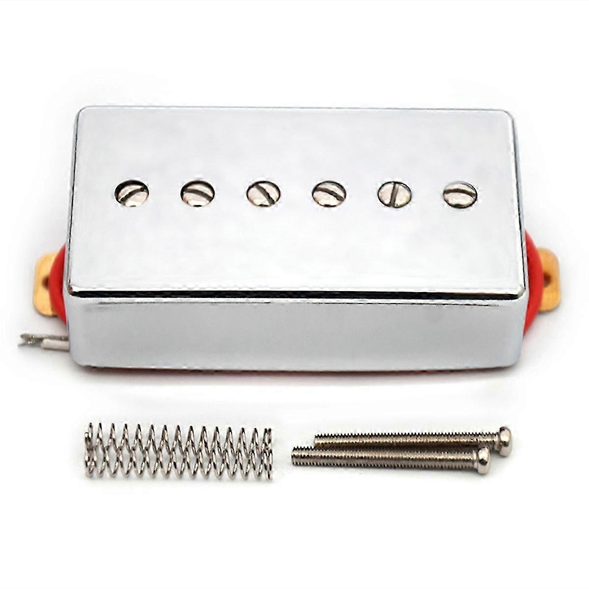 6 Adjustable Screw Humbucker Sized P90 Style Electric Guitar Pickups Single Coil Pickup N-50 or B-52 Black or Gold or Chrome Humbucker Sized P90 Style single coil electric guitar pickup 6 Adjustable pole piece Fully wax potted and sealed Position: Neck and Bridge Magnet: Ceramic Bobbin: Plastic Baseplate: Brass Resistance: Neck:7.5K Bridge:8K, Tolerance: 0.5K Cable: one with shield cable Note: Due to the difference between different monitors, the picture may not reflect the actual color of the item. Due to manual measurement, there may be a 1-2mm error in size. Color: Silver Material: Metal Package Contents: 1 x Electric Guitar Pickup 2 x Springs 2 x Screws Only the above package content, other products are not included. Note: Light reflection and different displays may cause the color of the item in the picture a little different from the real thing. The measurement allowed error is 1-3cm.