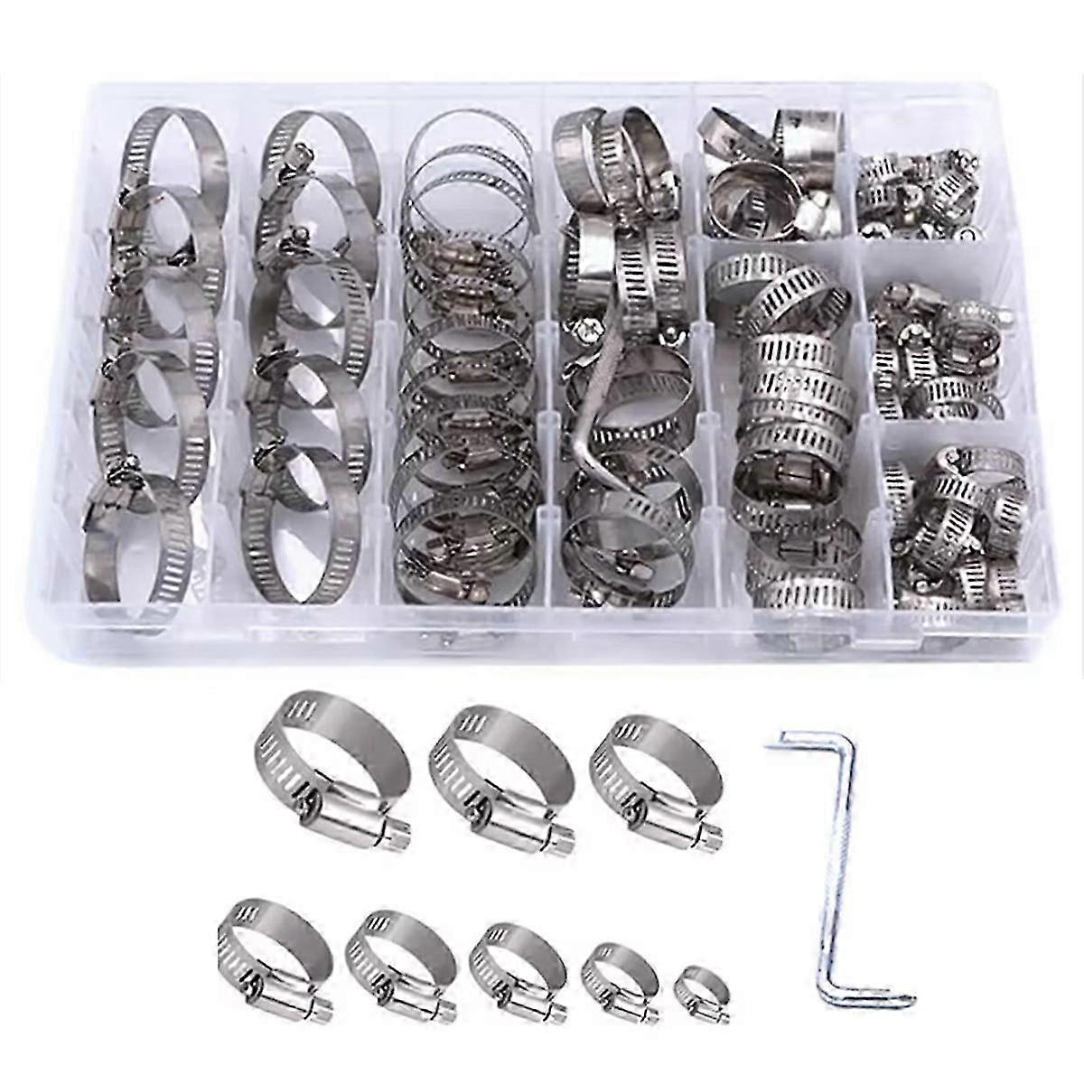 Stainless Steel Hose Clamps Set, Adjustable 8-44mm Pipe Clamps for Water Trachea Fixed Ring Clamps