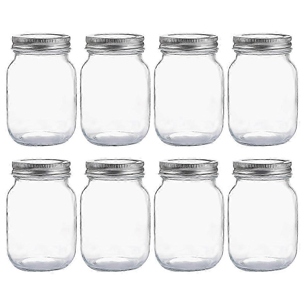 Glass Regular Mouth Jars with 16 Oz Clear Glass and Silver Metal Lids - Sealing Canning Jars for Storage