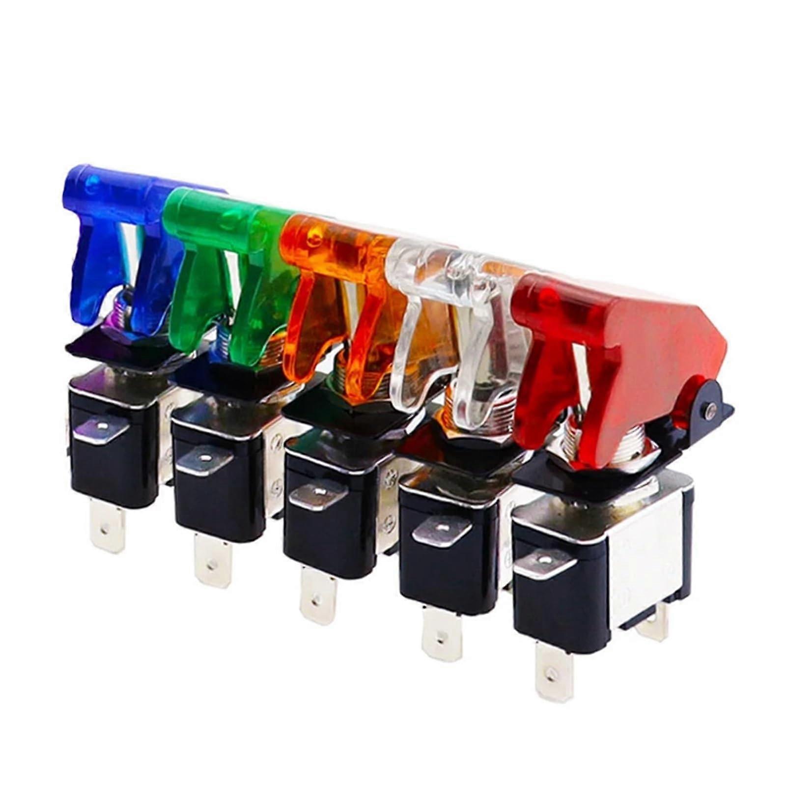 5Set Auto Car Boat Truck Illuminated LED Toggle Switch 12V 20A Aircraft Flip Up Cover Guard Red Blue Green Yellow White