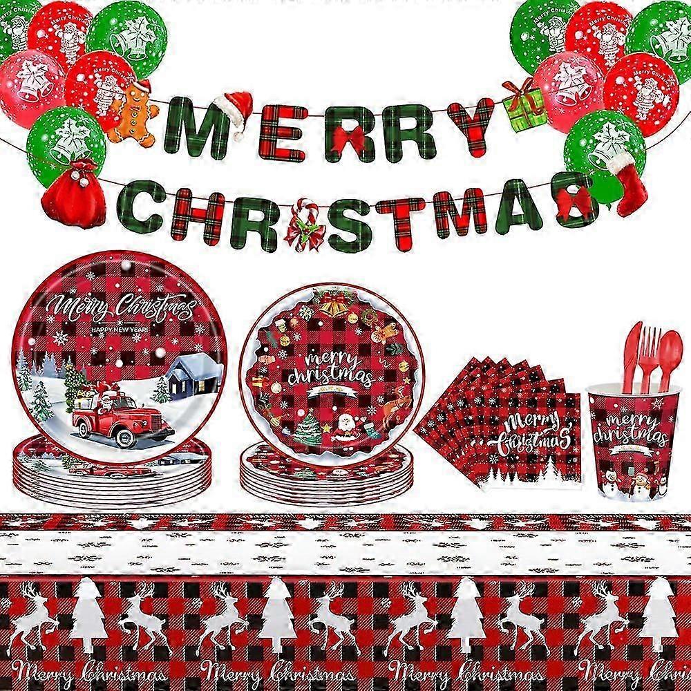 10-Piece Christmas Disposable Tableware Set with Santa Red Car Pattern Plates and Napkins for Festive Decor