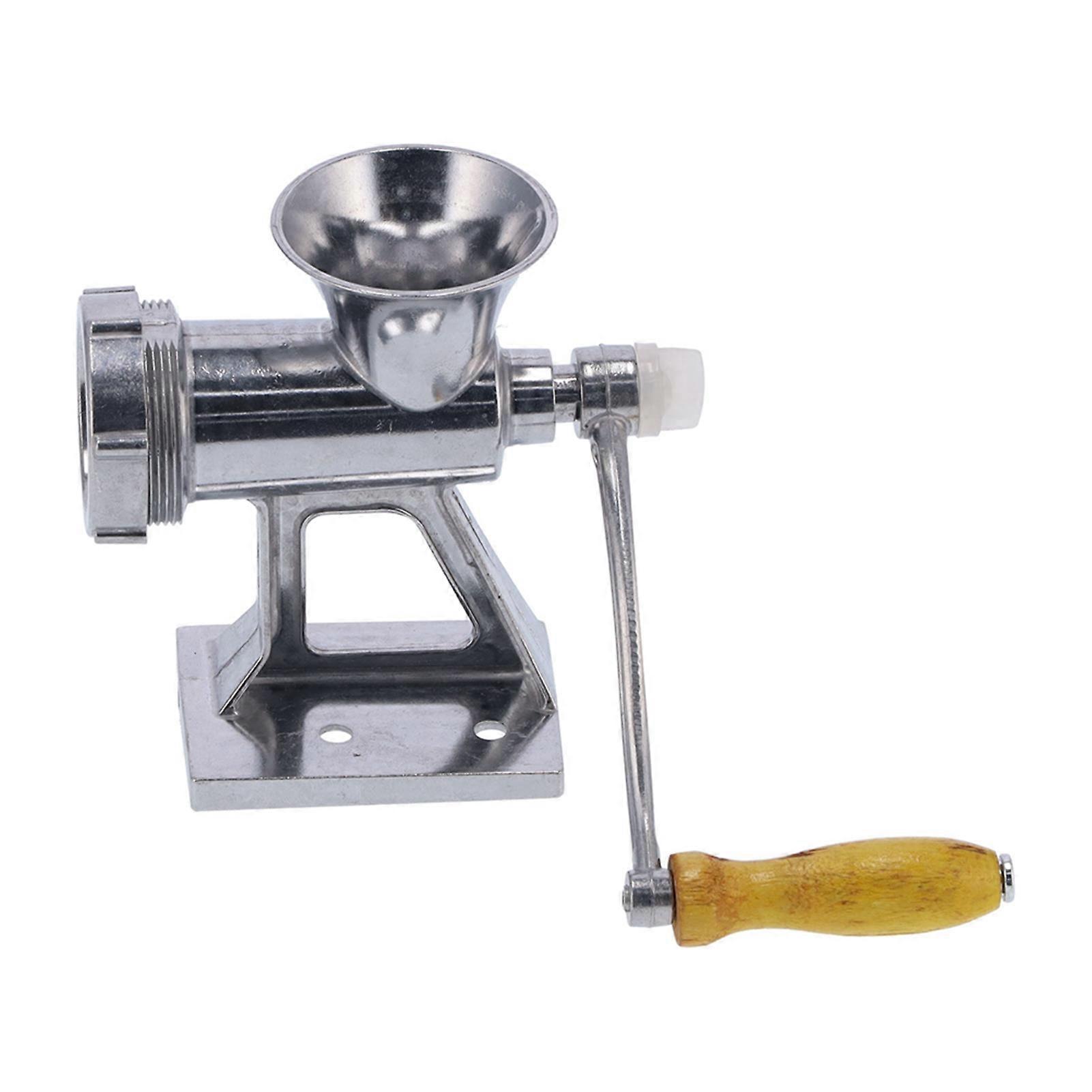 Manual Sausage Stuffer Anti‑Corrosion Anti‑Oxidation Meat Mincing Seasoning Sausage‑Making Meat Grinder Item Type: Manual Sausage Stuffing Machine Material: Aluminum Weight: Approx. 796g / 28.1oz Body Size: Height 14.8cm / 5.8in, Caliber 7cm / 2.8in Fixing Clip Height: 14.6cm / 5.7in Handle Size: Approx. 9.5x16cm / 3.7x6.3in