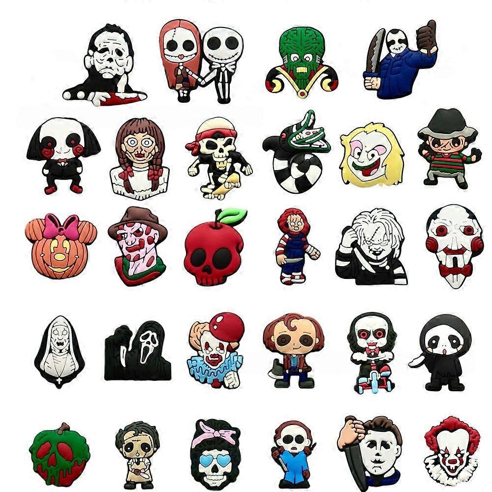 28 Pcs Horror Movie Shoe Charms for Clog Sandals, Cute Shoes Decoration Charms for Teen Adults