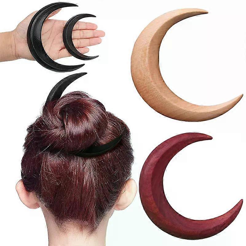 Retro Wooden Moon Hair Sticks Solid Hand Carved Wood Crescent Hair Forks for Women Hairpin Comb Clip Styling Retro Hair Jewelry