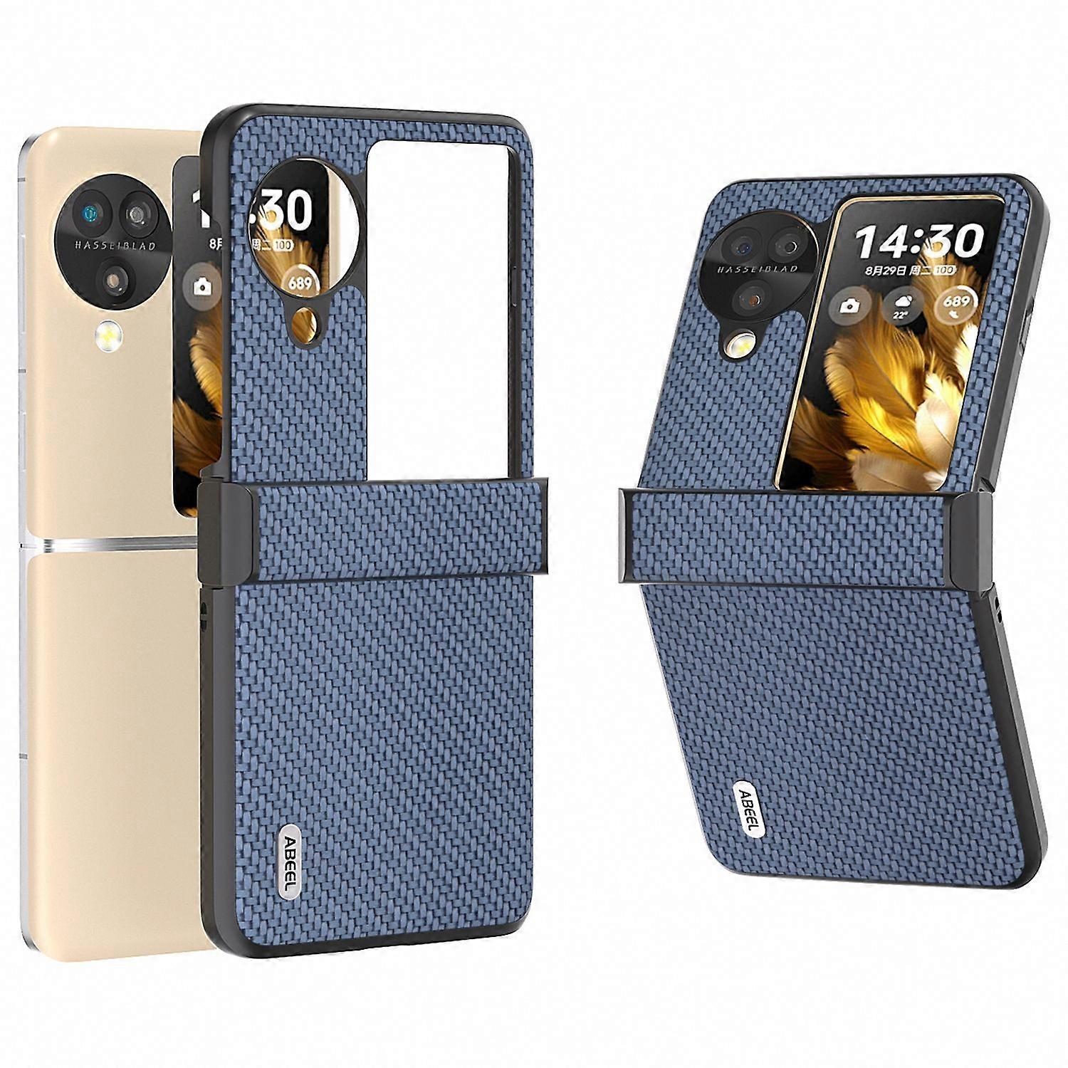 ABEEL For Oppo Find N3 Flip 5G Protective Phone Case Carbon Fiber Texture Cover - Sky Blue