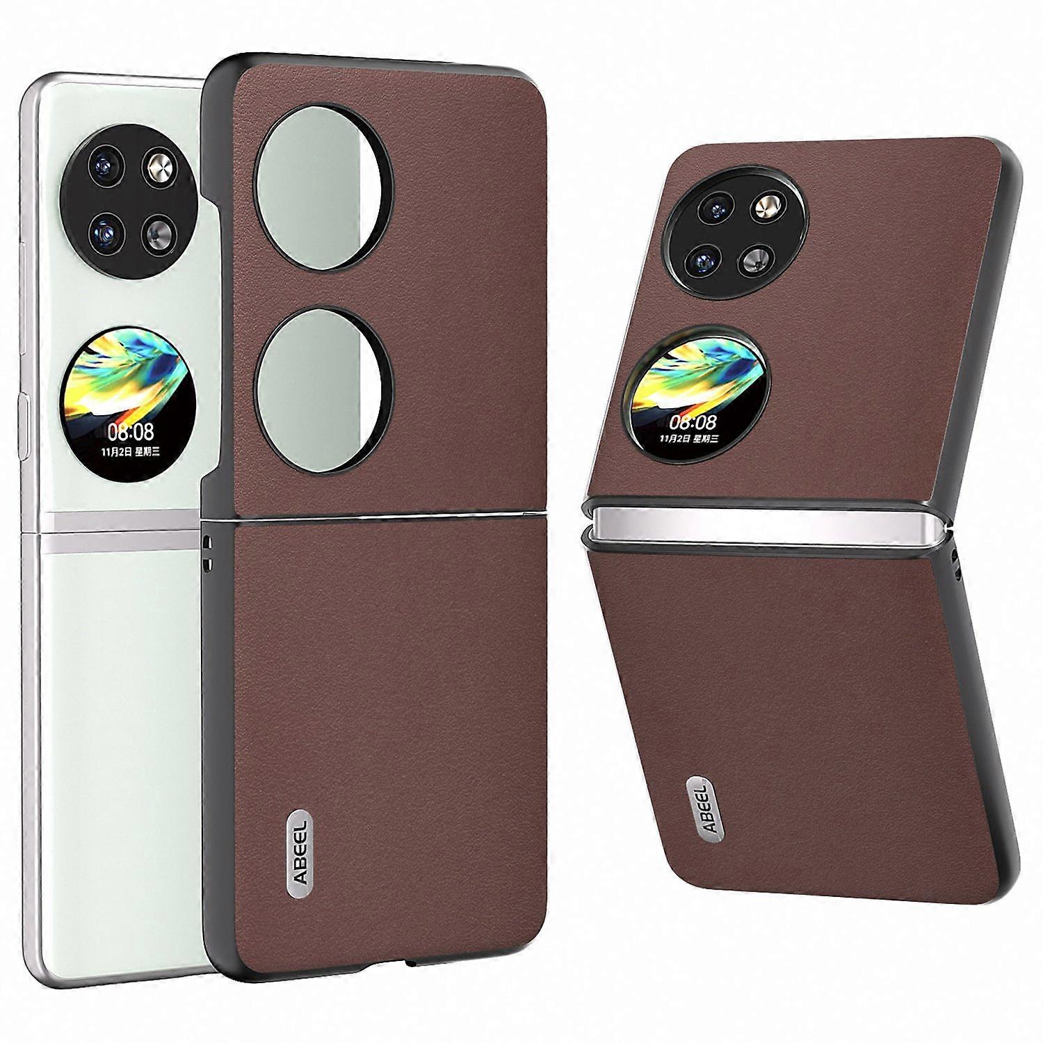 ABEEL For Huawei Pocket 2 Back Case Genuine Cow Leather Nappa Texture Cover - Coffee