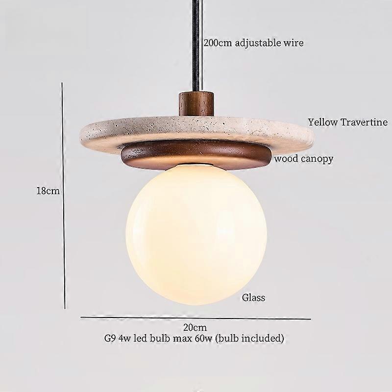 Stone Glass LED Pendant Lamp Yellow Travertine Children's Room Dining Living Room Nordic Minimalism Hanging Light lampara