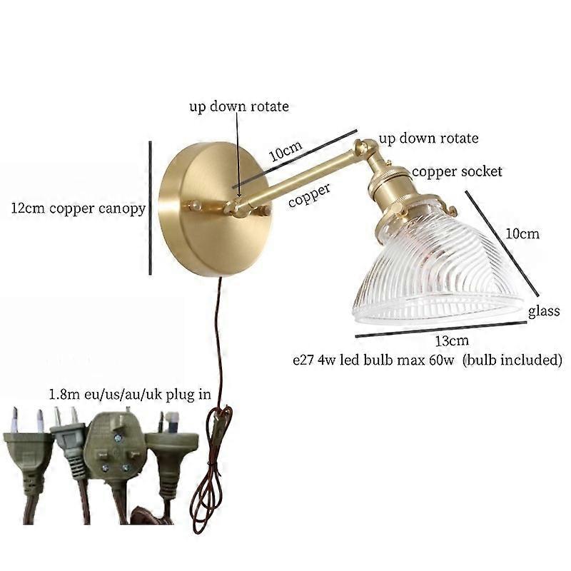 Hexagonal Glass LED Wall Lamp For Living Room Loft Bedroom Bathroom Mirror Light Pull Chain Switch Vintage Copper Wandlamp