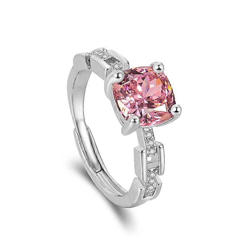 Square Pink Ring, European American Luxury Ice Flower Cut Zircon Women's Fashion Ring