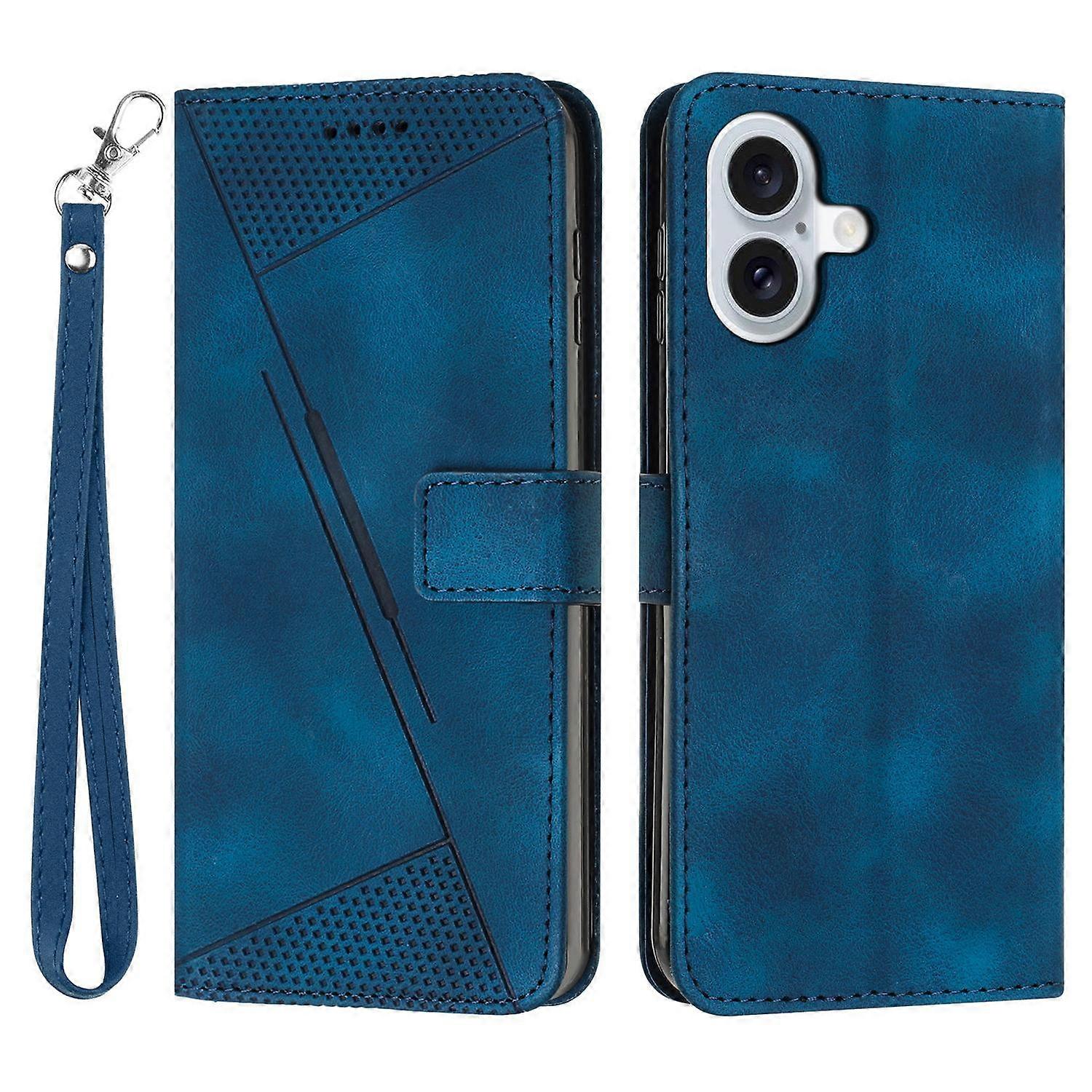 For iPhone 17 Leather Case Imprinted Triangle Phone Cover with Hand Strap - Sapphire