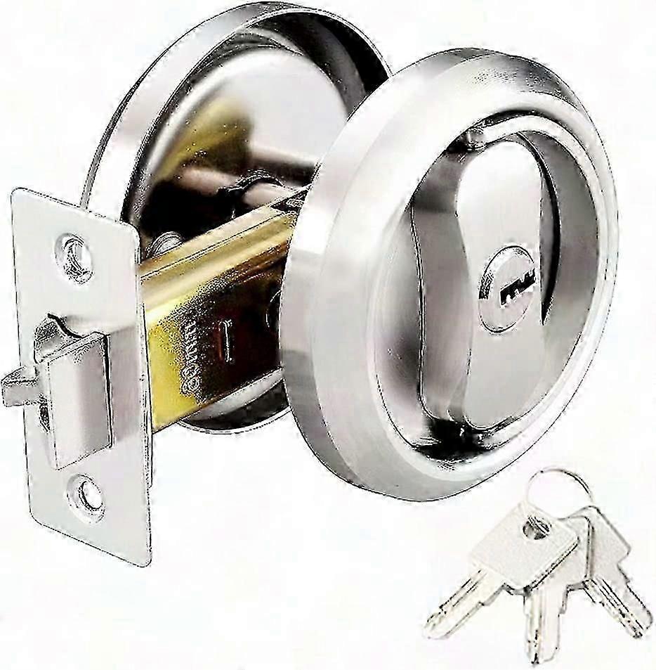 Round Pocket Door Lock With 3 Keys, 304 Stainless Steel For Bedroom Kitchen Bathroom Laundry Room