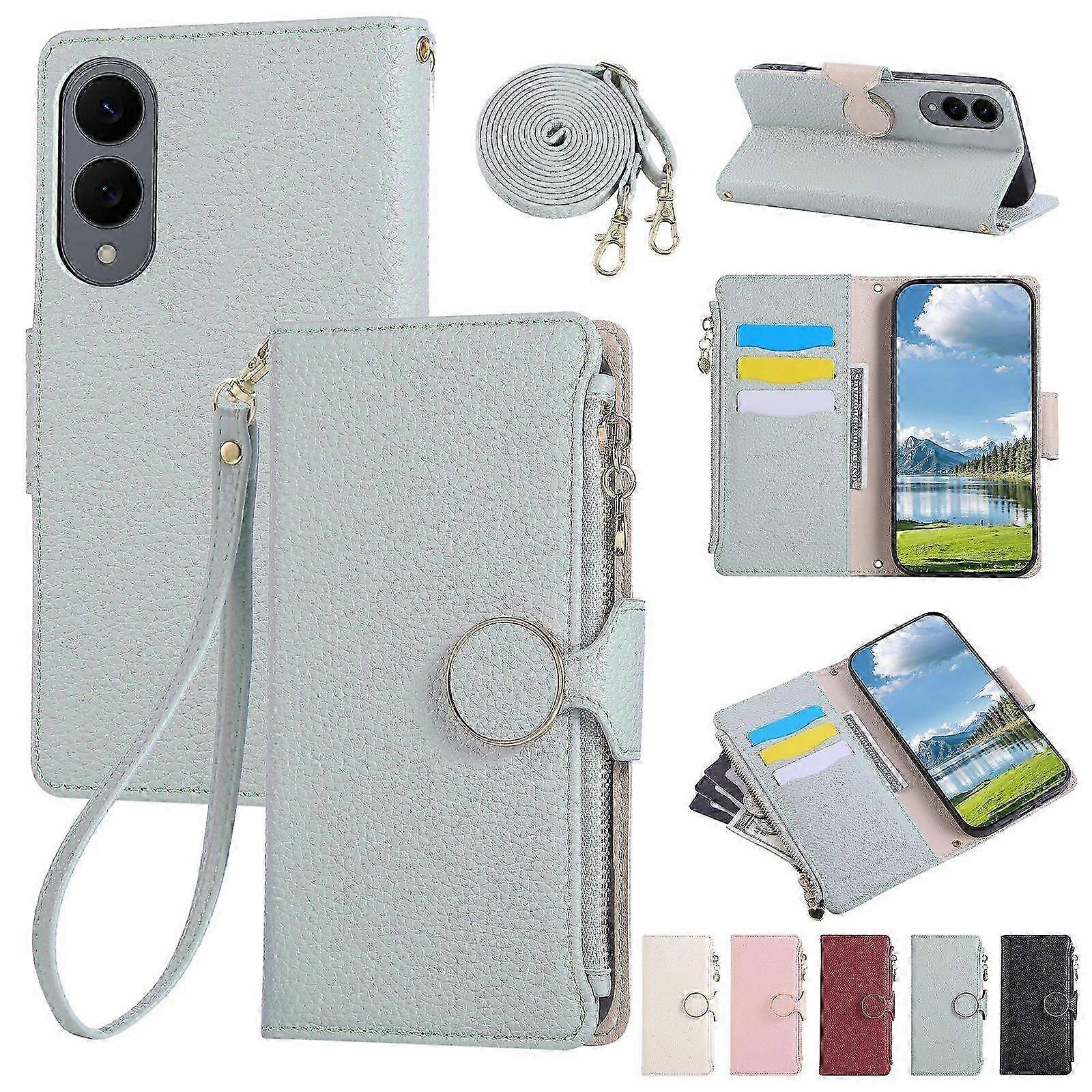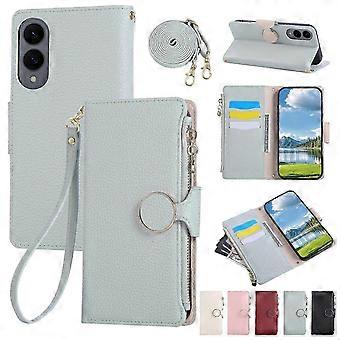 Round Buckle Zipper Wallet Leather Phone Case With Crossbody Strap