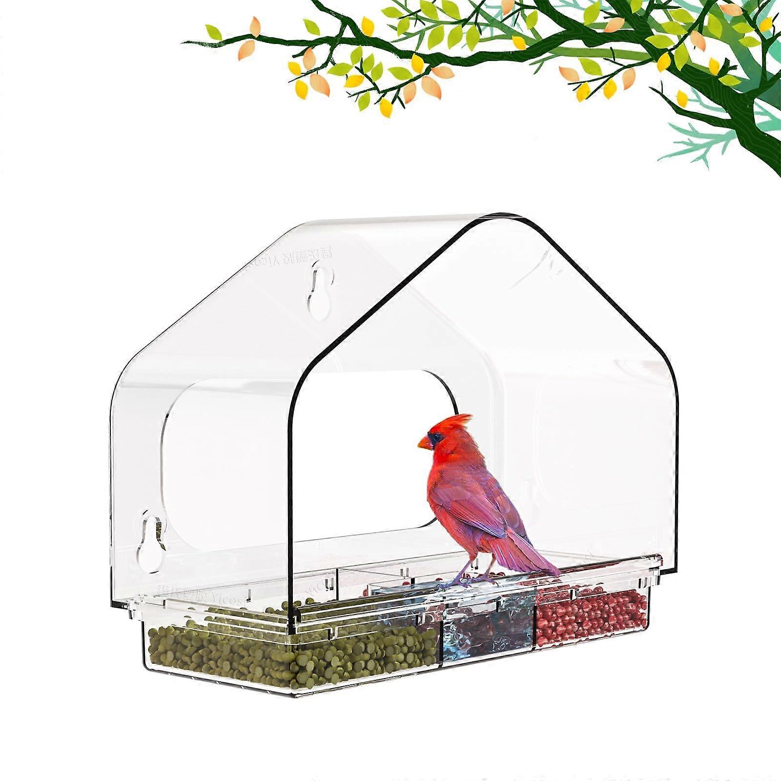 Voederhuisje voor vogels in het raam drainagegaten eekhoornbestendige voederhuisje uitneembare lade grote zaadop vogelkijkvenster sterke zuignap