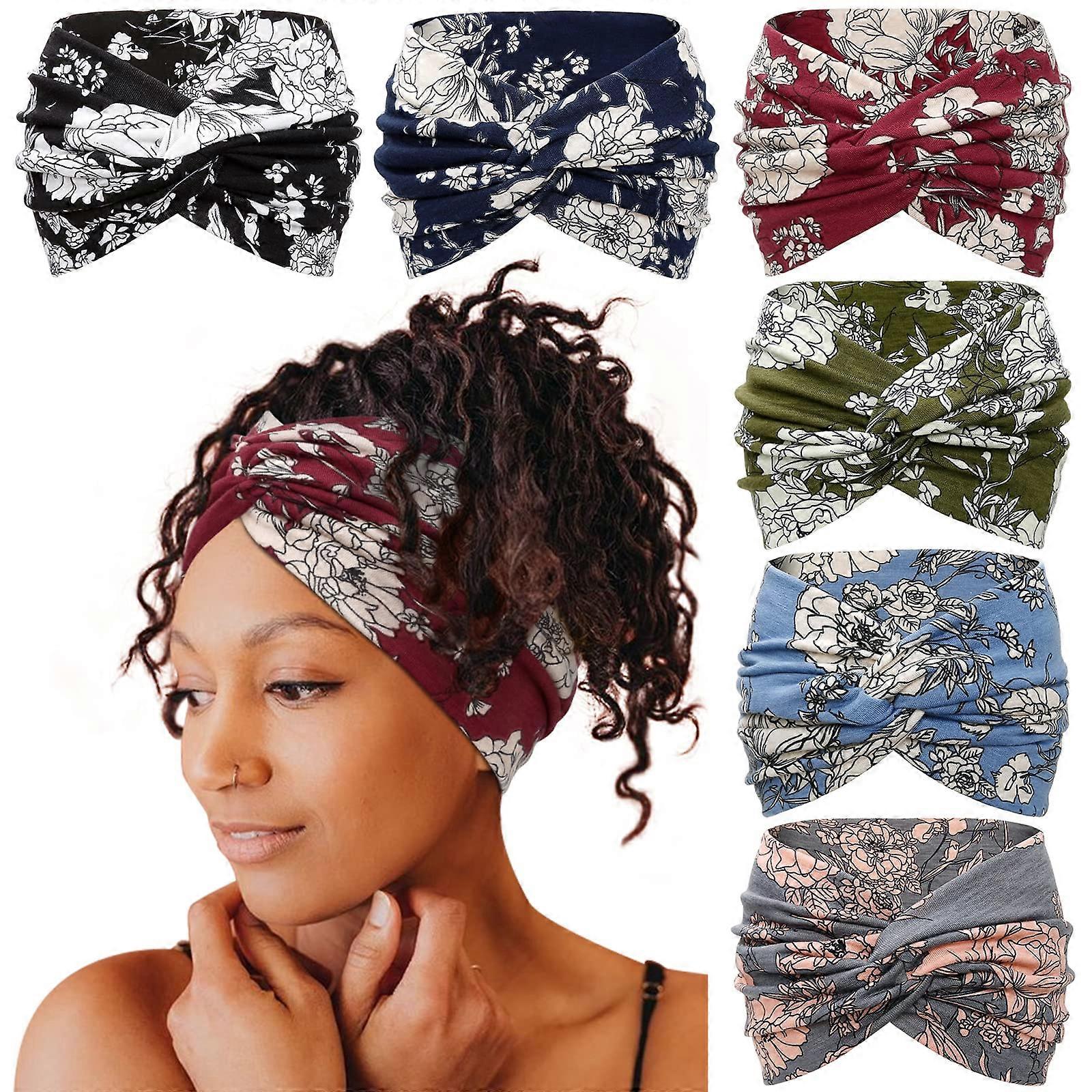 Brede hoofdband voor vrouwen 6-delige set 7 inch tulband met bloemenprint Boho haarband gedraaide haaraccessoires