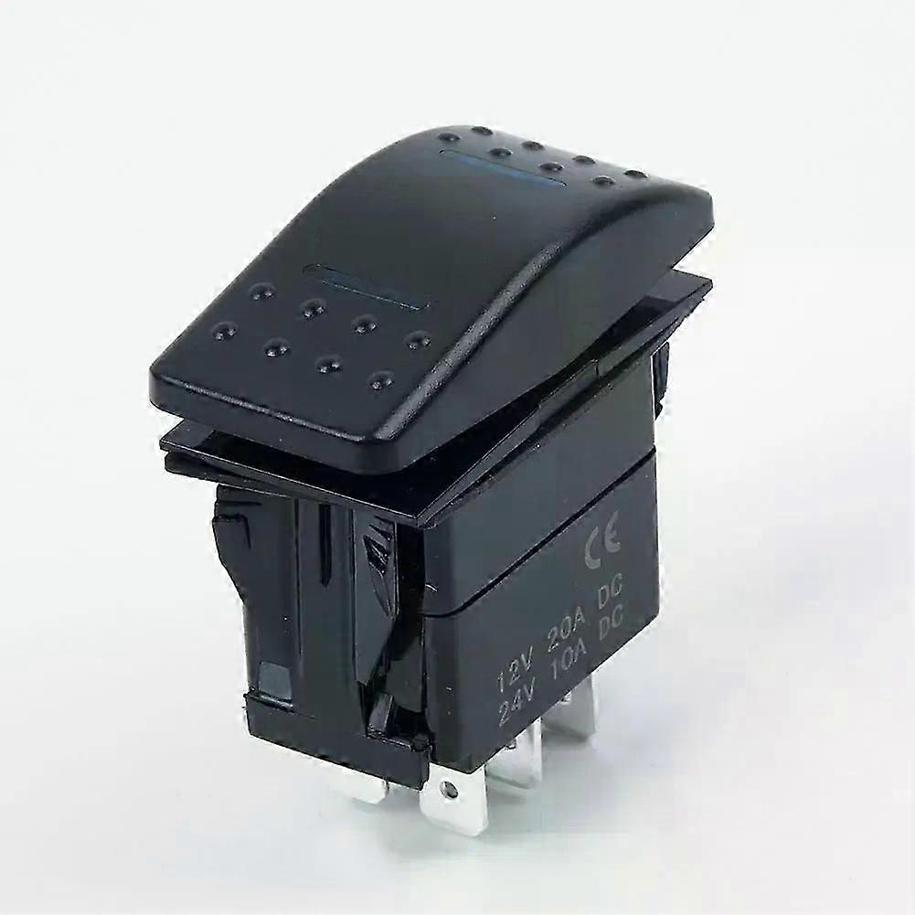 7Pin DPDT ON-OFF-ON 2 LED Rocker Switch Car Truck Marine Universal DC 12V 20A / 24V 10A Rocker Switch For Boats Off-road CarNOTE: This is a momentary switch. Item Details: * new and high quality *Made of high-quality materials, and practical. *Ideal for four-wheel drive and transportation applications *Rated current:20A, only 12V, 10A, 24V *High quality waterproof and rocker switch *Made from high ABS plastic *Bright LED indicator, two LED lights,convenientfor night viewing *Suitable for most cars, boats, motorcycles, motor homes, off-road vehicles, etc. *Compatibility is for reference only. Please compare with before purchasing Specification: *Model: 660030 *ItemName: DPDT switch *Material: ABS plastic *Light: Blue *Pin: 7 *Switch: On-Off-On *Pole / end: bipolar double end *Voltage: DC 12V 20A / 24V 10A *Size (approx.): 49 (length) X 52.5 (height) X 24 (width) mm *Quantities: 1 pc Package Contents: 1*Rocker Switch Notes: 1. The real color of the item may be slightly different from the pictures shown on website caused by many factors such as brightness of your monitor and light brightness. 2. Please allow slight manual measurement deviation for the data . _x000D_ Due to differences in shooting equipment, displays, and production batches, the product may have slight color differences. This is normal, please refer to the actual product. We have tried our best to restore the true color through professional equipment, but we still recommend that you watch it under natural light for the most accurate visual effect.
